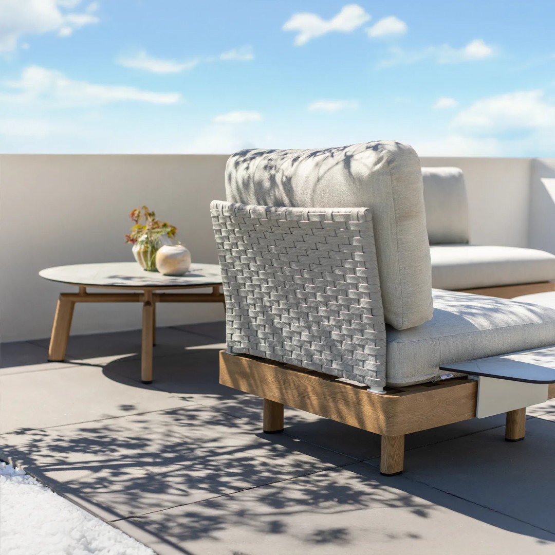 Центральный элемент садовой мебели Lounge является ключевым компонентом коллекции Lounge, разработанной для создания гибких и функциональных зон отдыха на открытом воздухе. Его модульная конструкция позволяет создавать гибкие конфигурации, адаптируя комплект к индивидуальным потребностям и характеру окружающей среды.