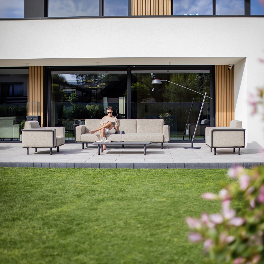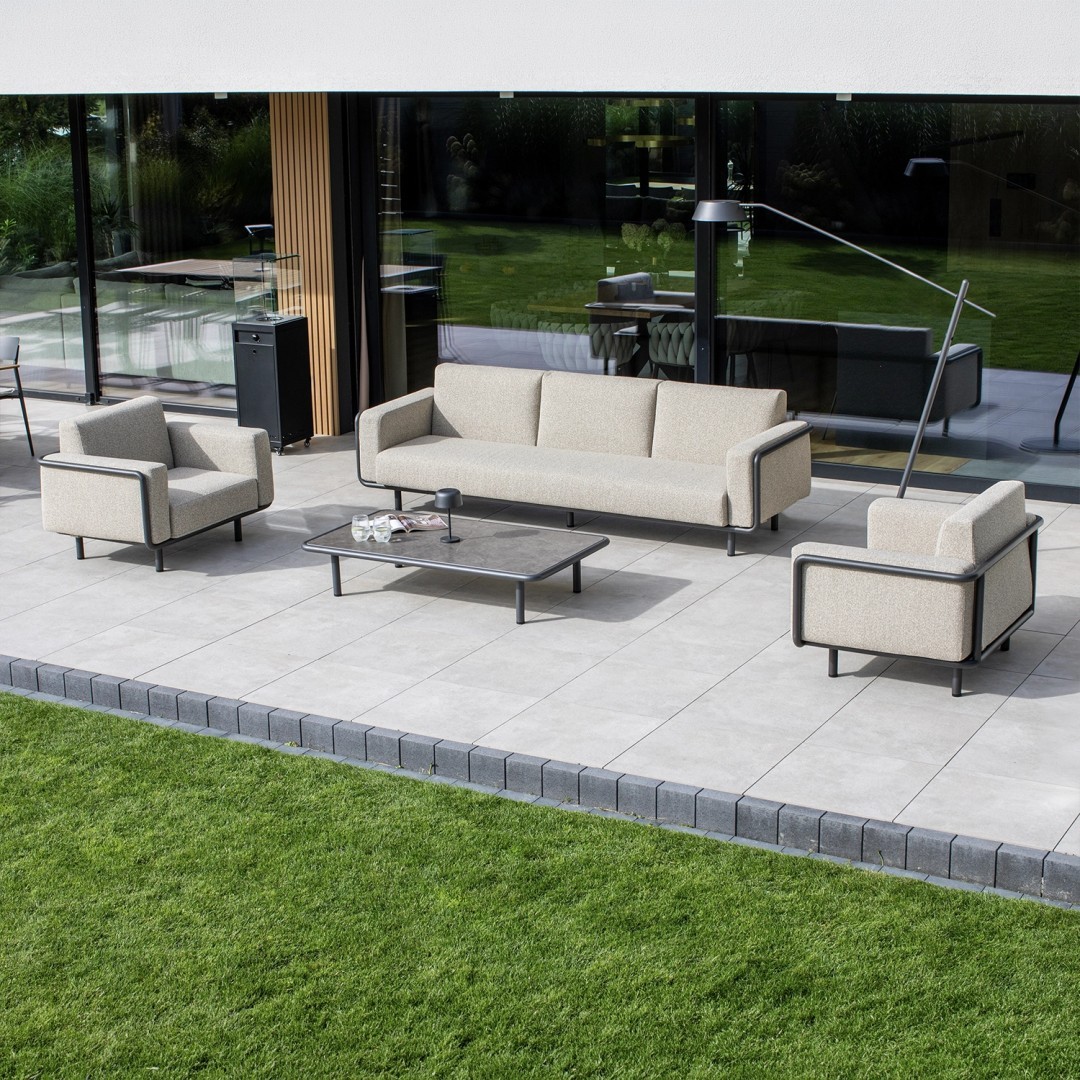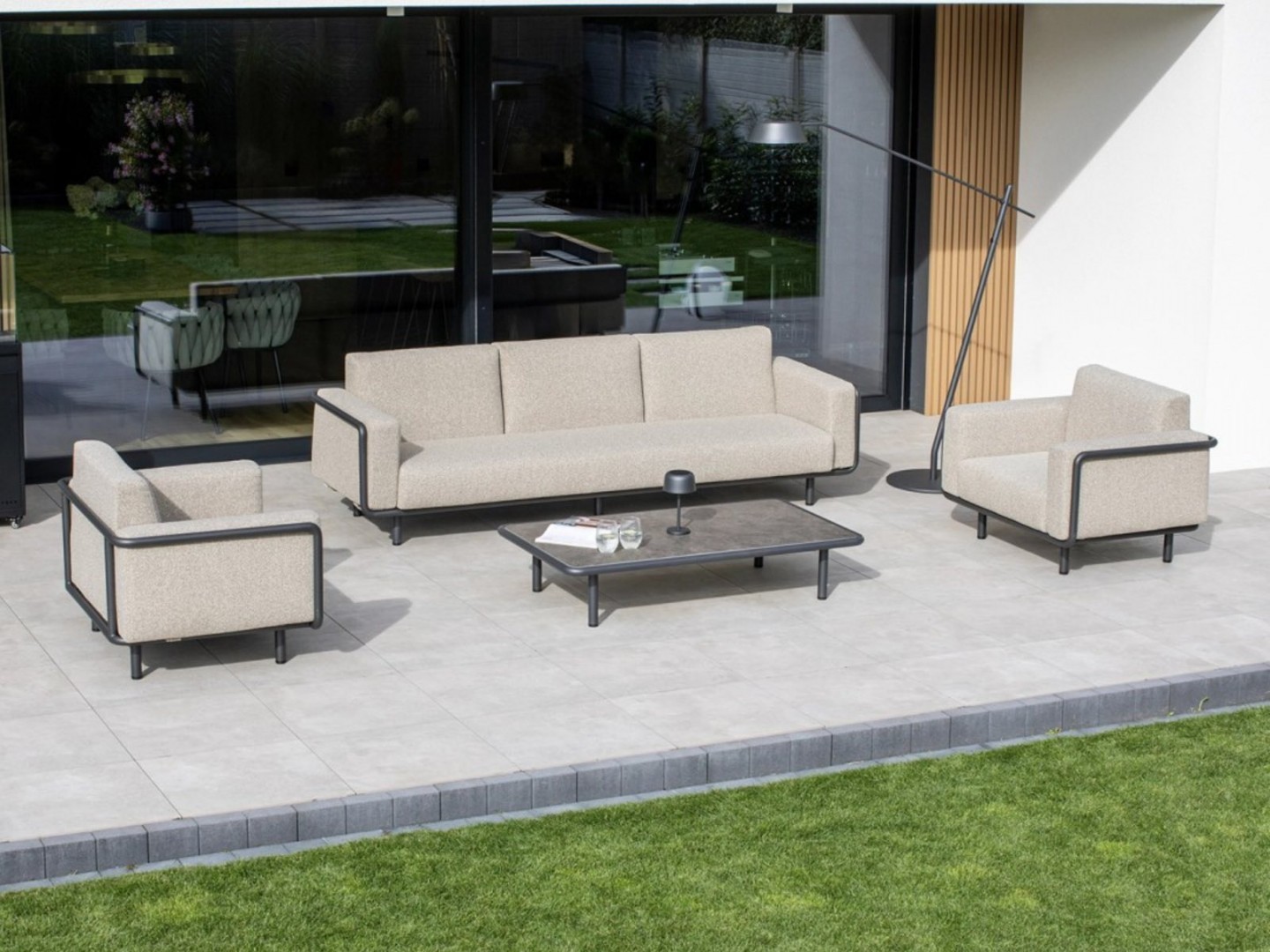 Комплект садовой мебели AURA предназначен для использования на открытом воздухе, как в частных, так и в коммерческих целях. В комплект входят трехместный диван, два кресла и стол, создающие гармоничную зону отдыха на террасе, в саду или у бассейна.