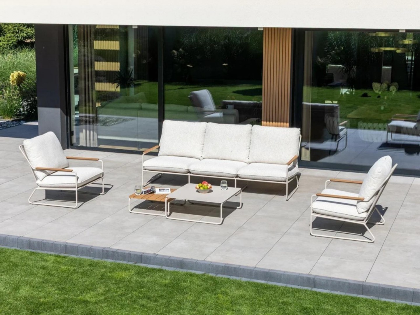 BLOOM – это комплект садовой мебели, предназначенный для создания гармоничной и функциональной зоны отдыха на открытом воздухе. Комплект включает в себя трехместный диван, два кресла и журнальный столик, что позволяет гибко организовывать места для сидения и проведения встреч.
