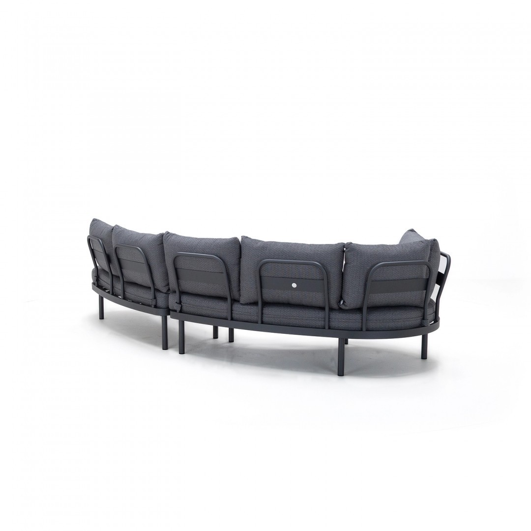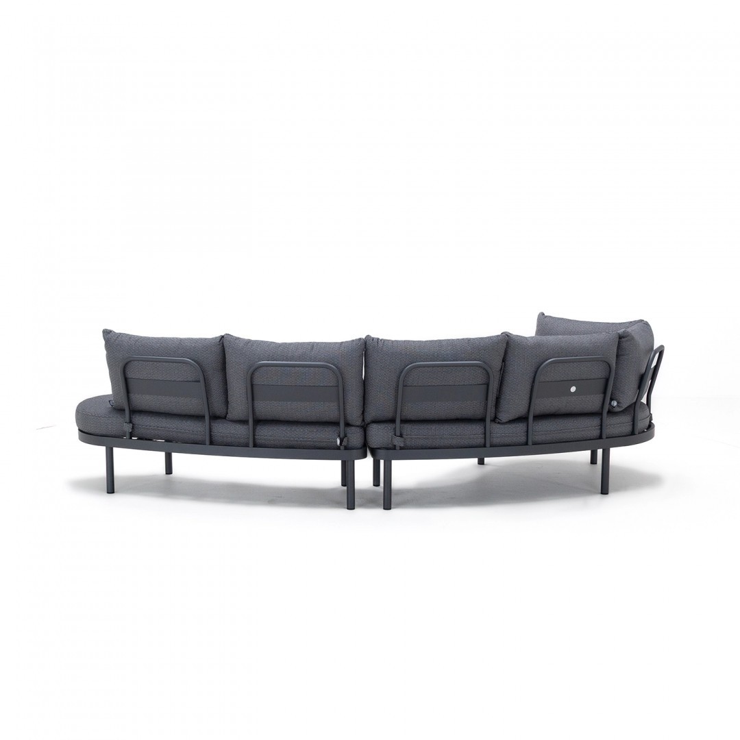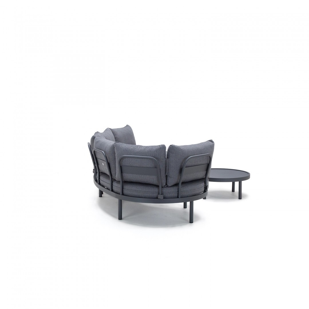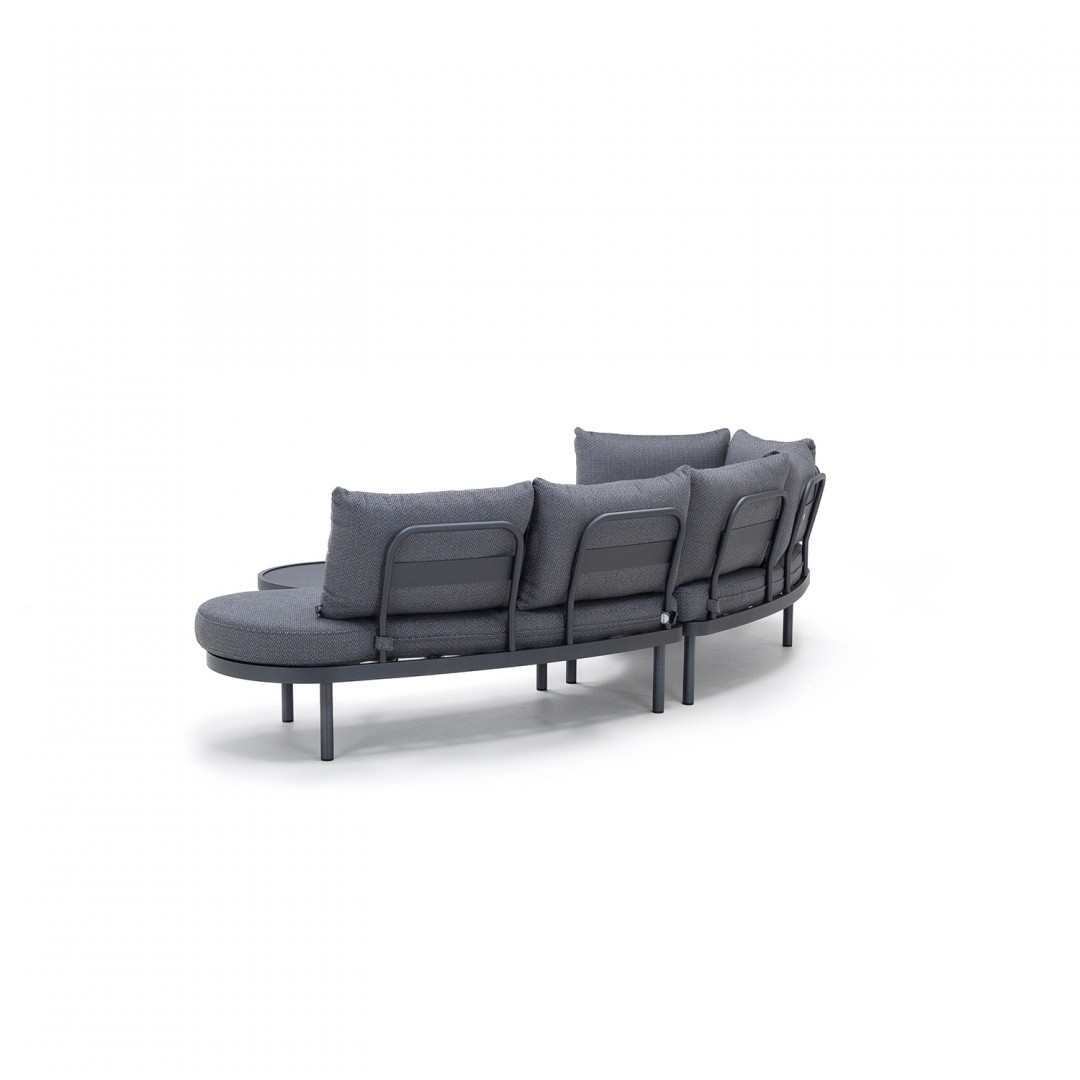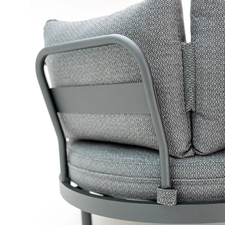 Алюминиевая конструкция с порошковым покрытием обеспечивает устойчивость к воздействию внешних условий, а обивка сидений и спинок из олефиновой ткани гарантирует долговечность и комфорт. Используемый пенополиуретан стандартной плотности сохраняет свою форму при ежедневном использовании.