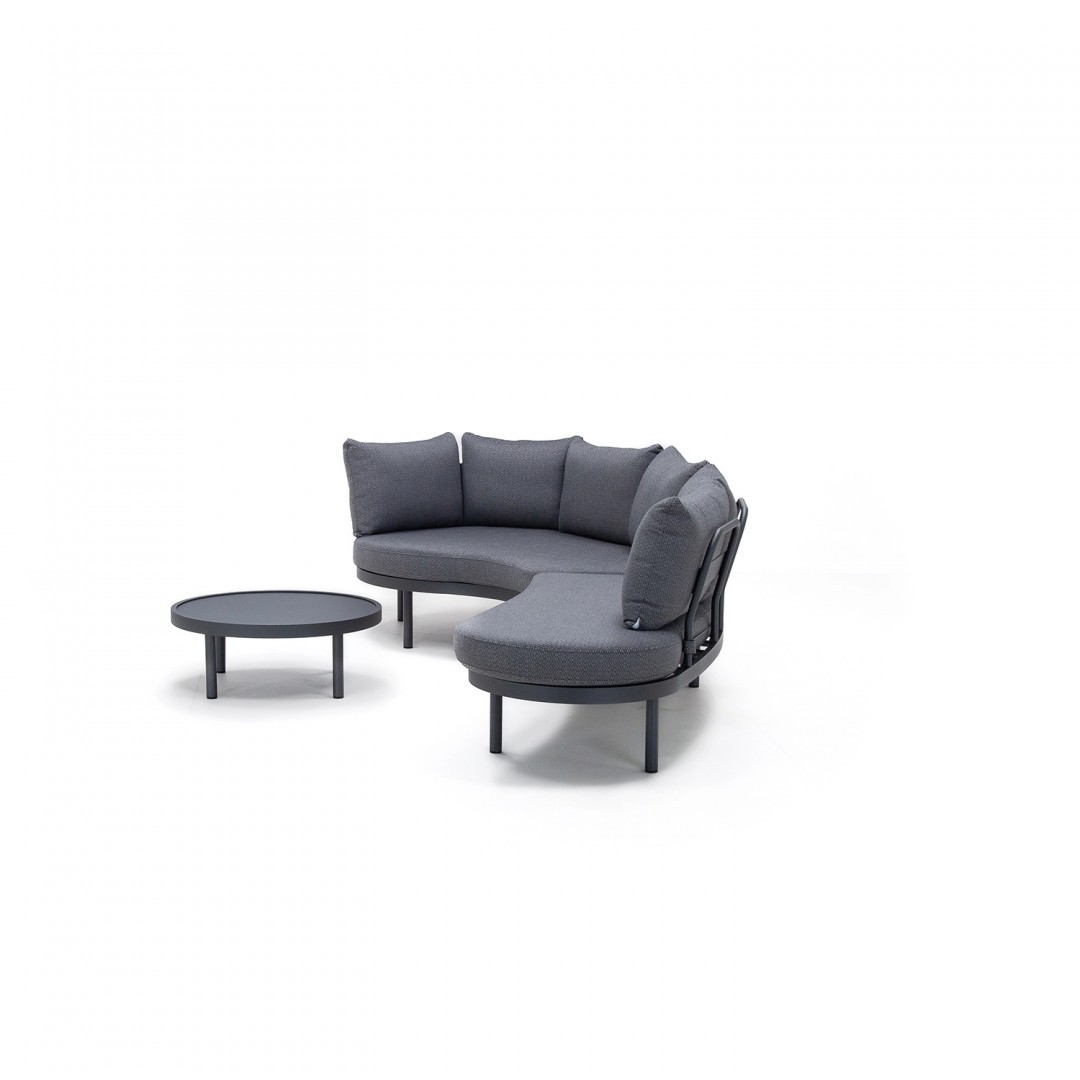 Комплект Cloudy — это набор садовой мебели, предназначенный для зон отдыха на открытом воздухе. Он состоит из двухместного дивана, модуля для отдыха и журнального столика, создавая гармоничное пространство для повседневного отдыха и встреч в саду или на террасе.