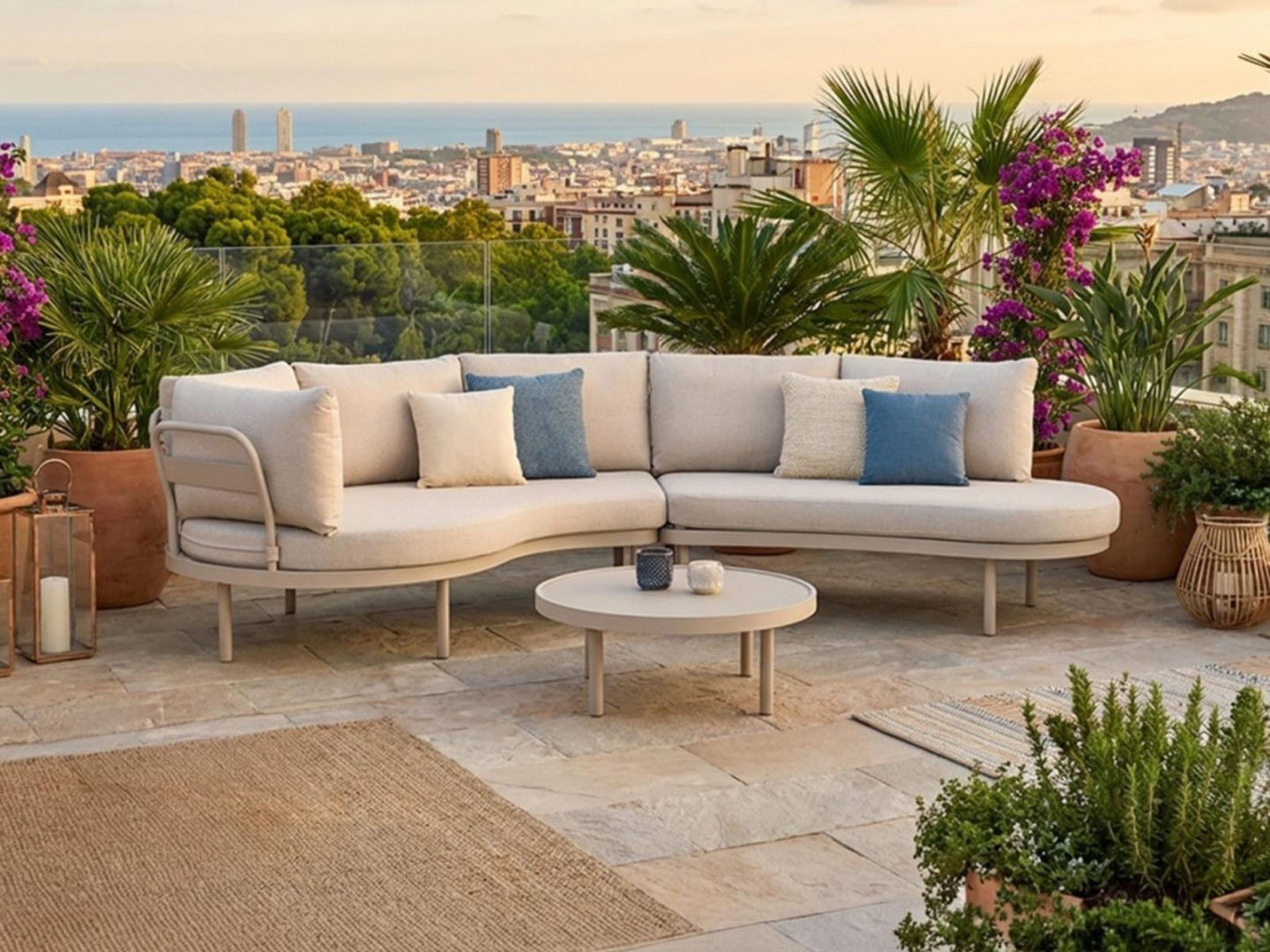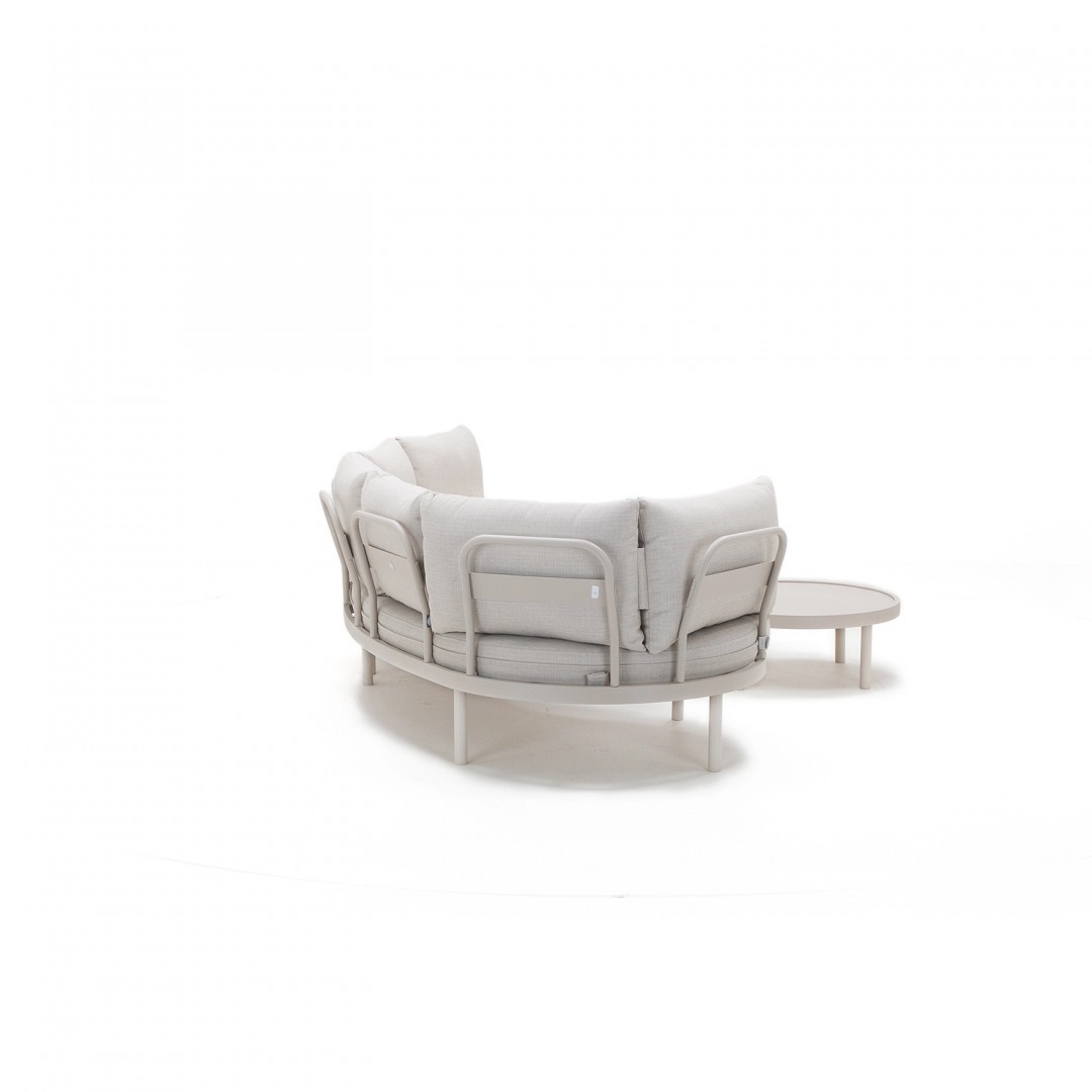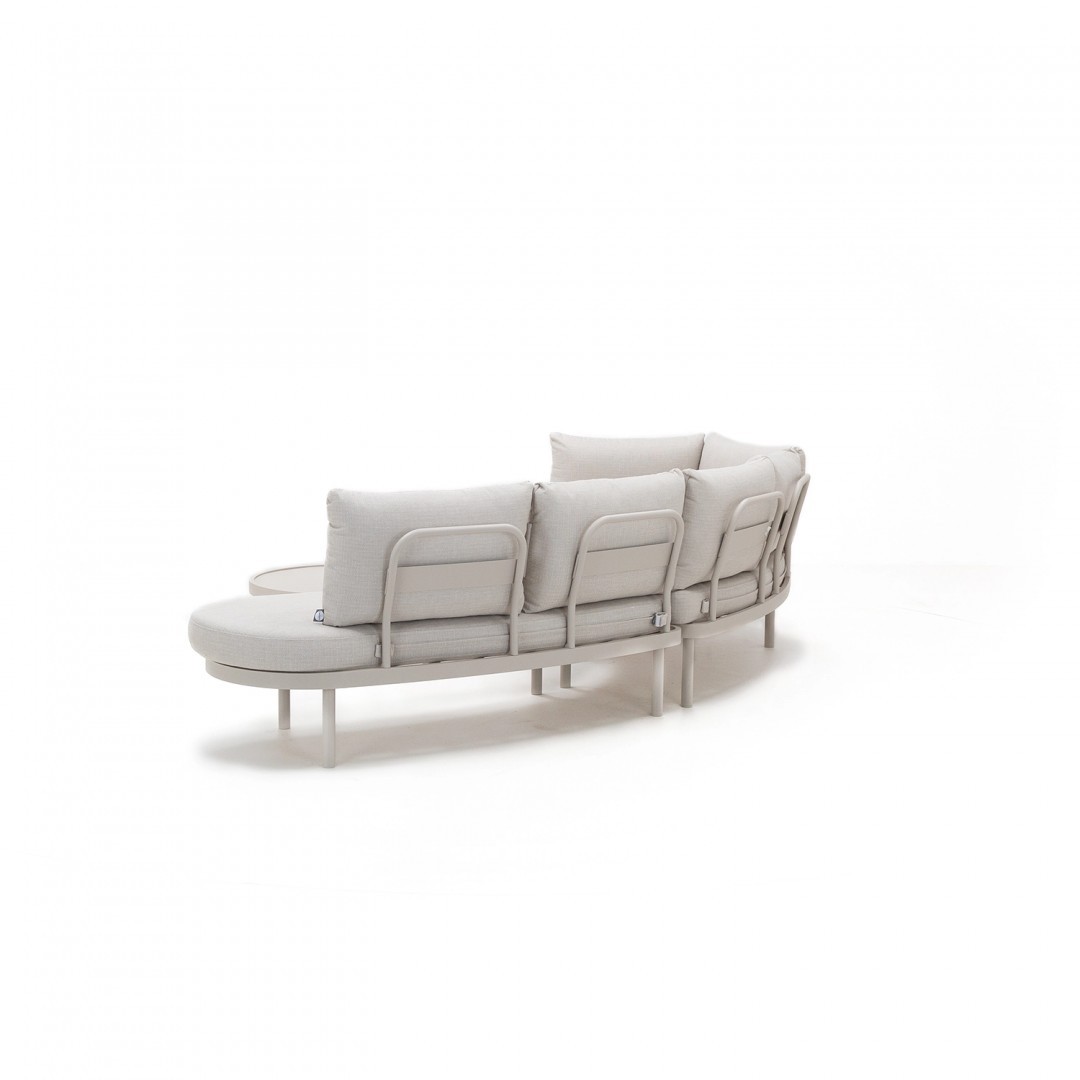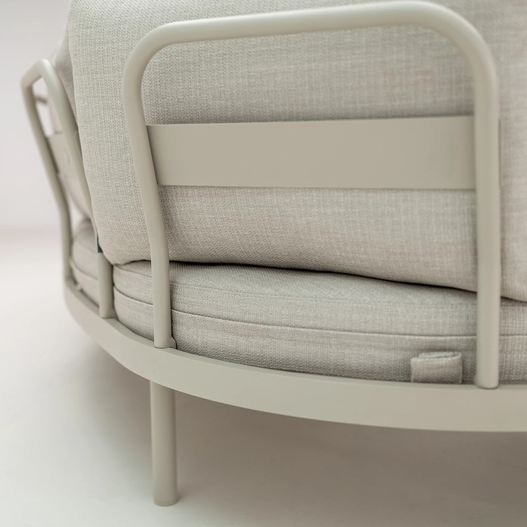 Алюминиевая конструкция с порошковым покрытием обеспечивает устойчивость к воздействию внешних условий, а обивка сидений и спинок из олефиновой ткани гарантирует долговечность и комфорт. Используемый пенополиуретан стандартной плотности сохраняет свою форму при ежедневном использовании.