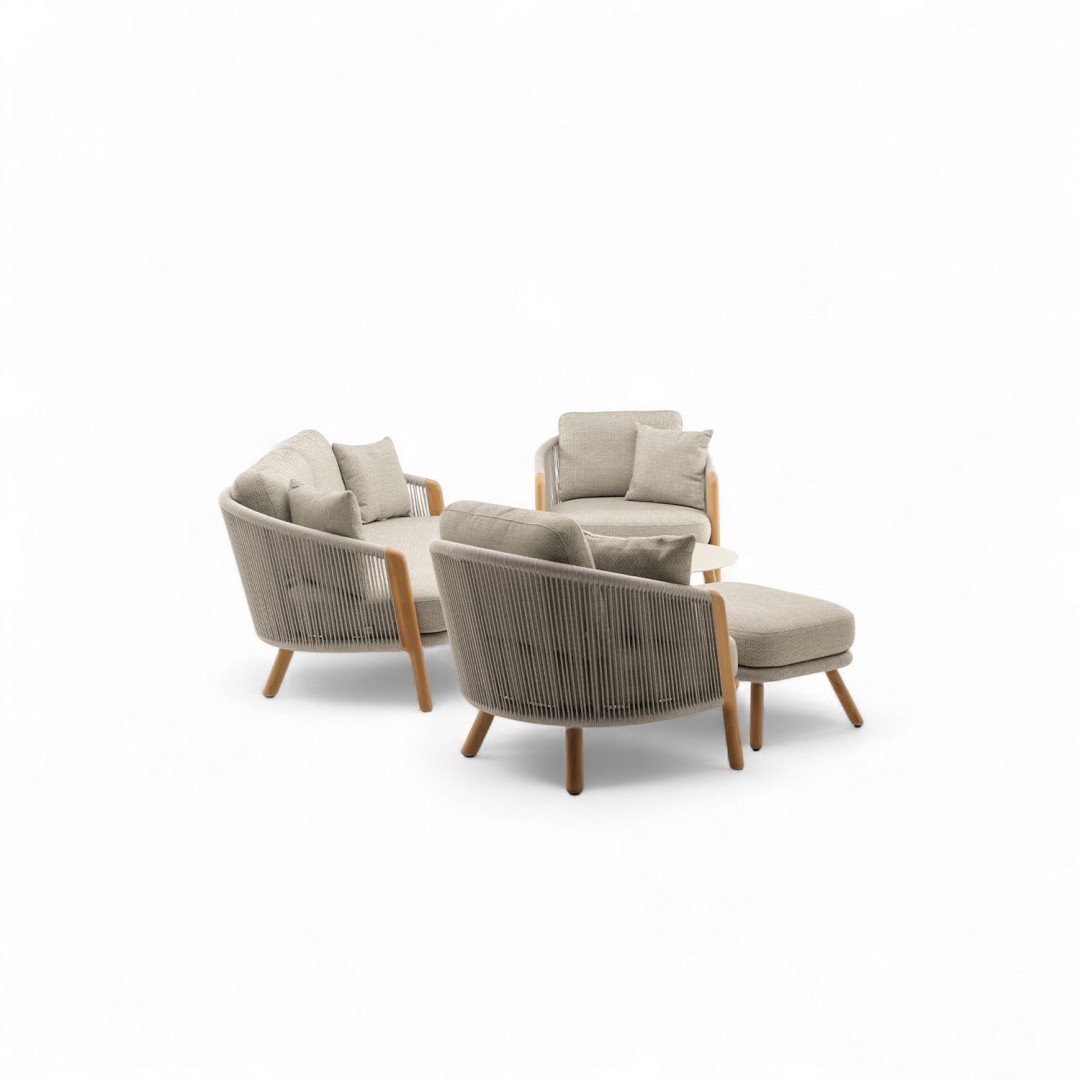 КАРКАС: Для изготовления каркасов мебели компания ZUMM использует высококачественный сварной алюминий с порошковым покрытием, тиковое дерево и веревки из полипропилена или материала Textiline.