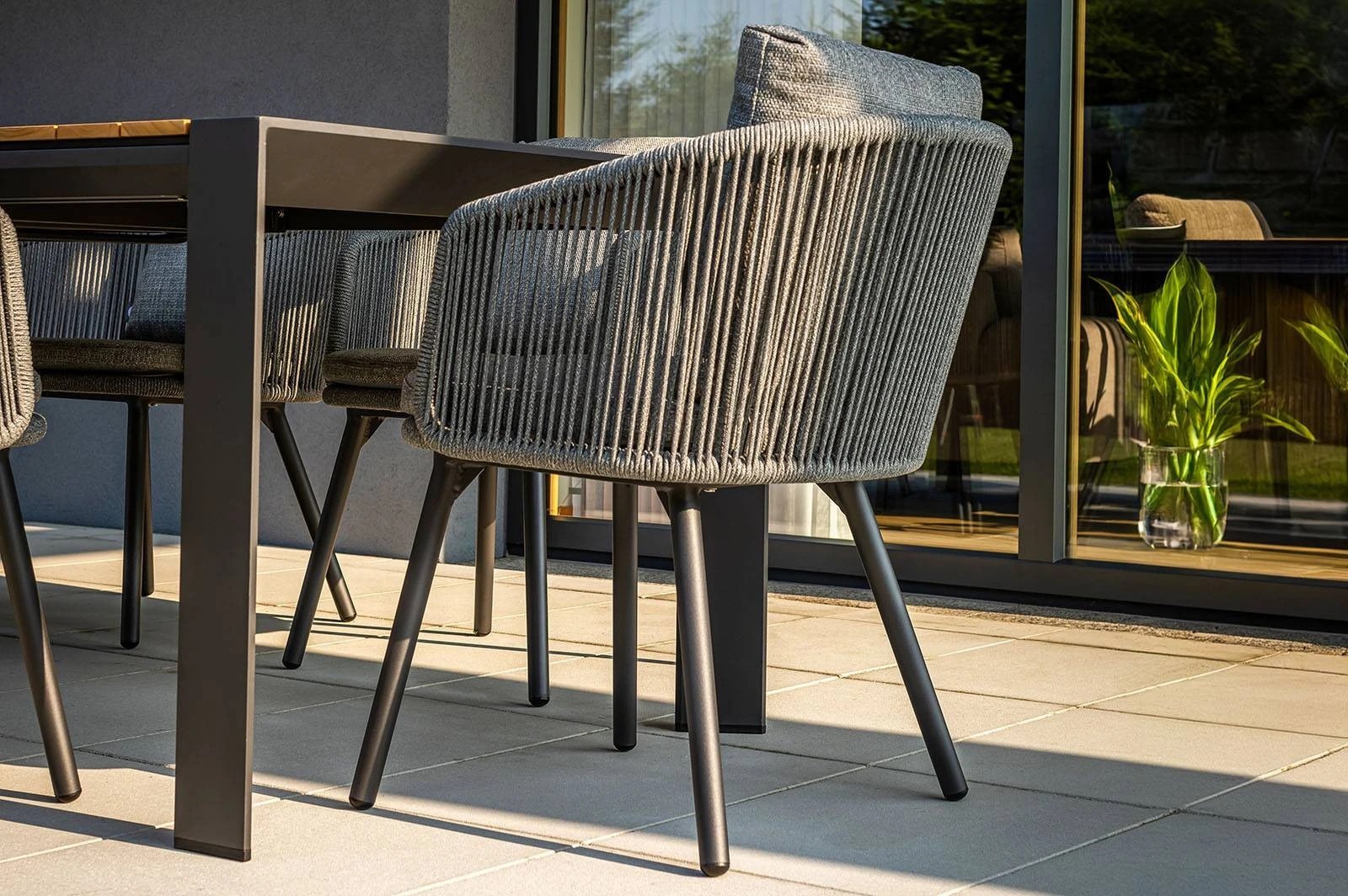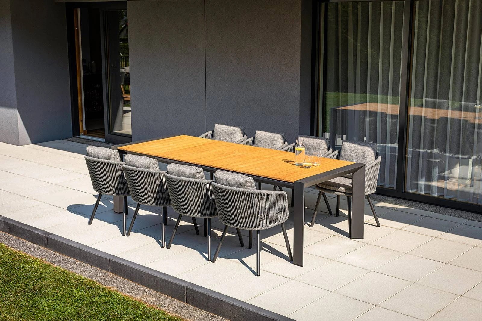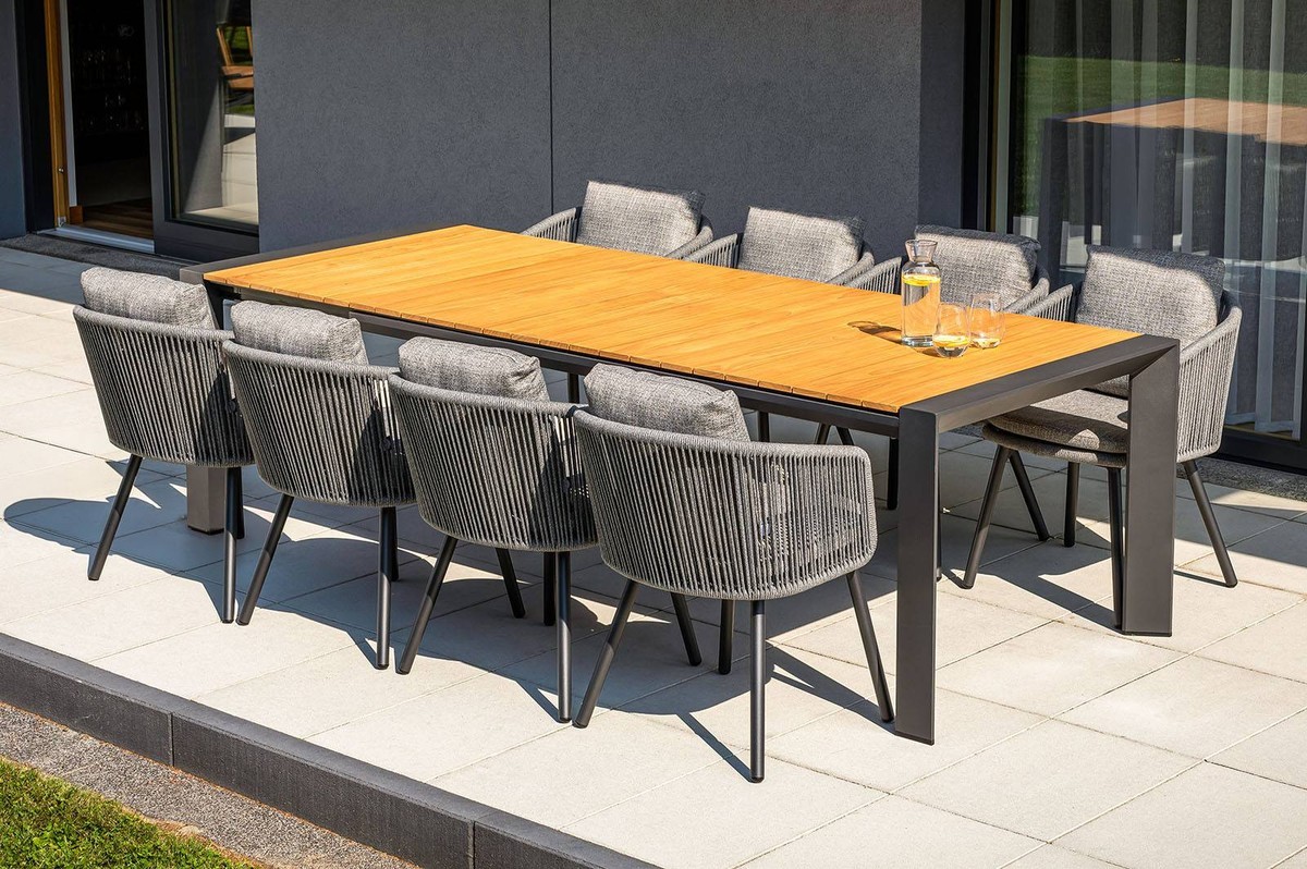 Представляем уникальный садовый комплект "MURO II", сочетающий в себе элегантность и современность, который украсит любое открытое пространство. Комплект "MURO II" – идеальный выбор для тех, кто ищет роскошь и комфорт на своей террасе или в саду. Сочетание элегантного стола MURO и восьми удобных стульев HARBOUR антрацитового цвета создает неповторимую атмосферу, которая делает каждый момент на открытом воздухе незабываемым.