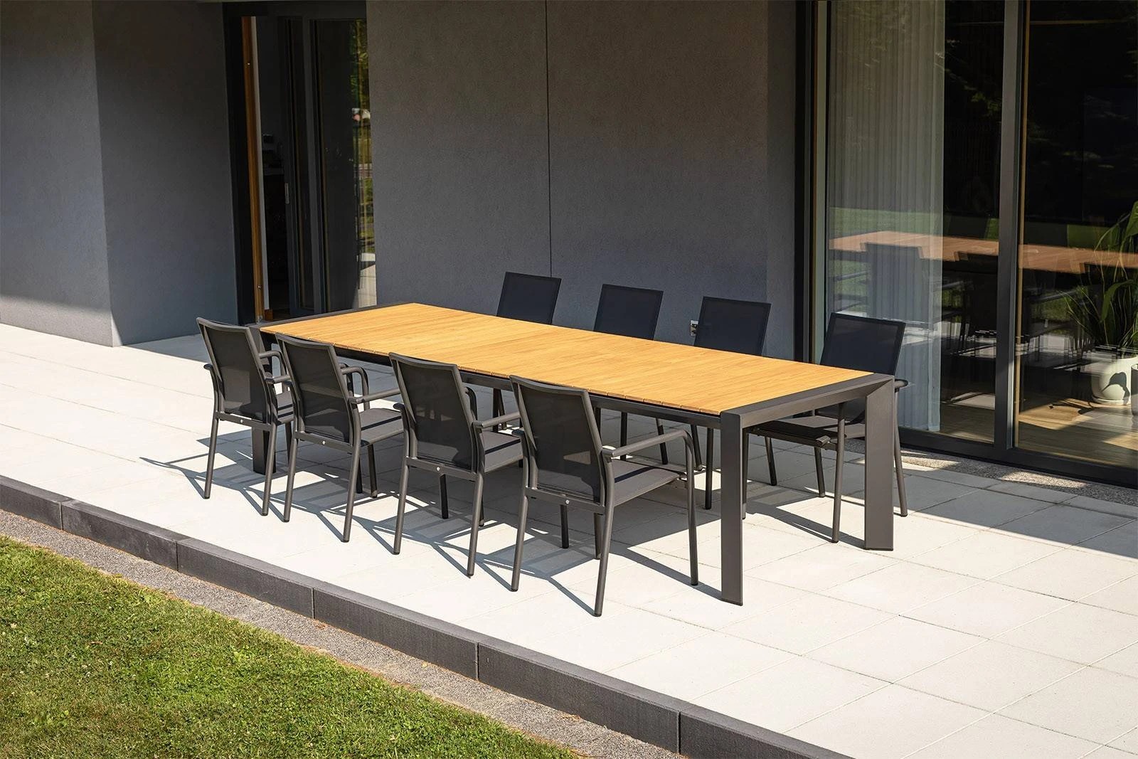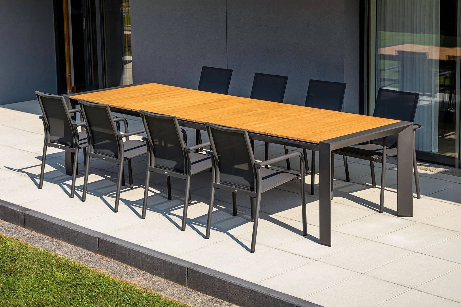 Садовый комплект "MURO VIII" сочетает в себе современный дизайн и роскошный комфорт, идеально подходящий для вашей террасы или балкона. В комплект входят элегантный стол MURO и роскошное кресло SOLLER, оба разработаны для тех, кто ценит стиль и долговечность в своем открытом пространстве.