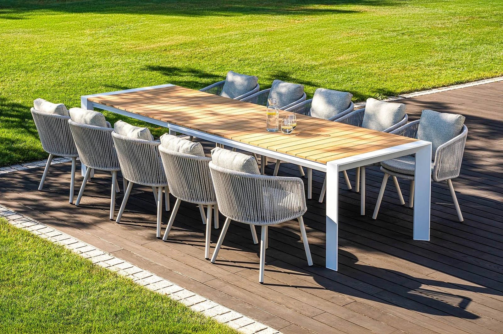 Представляем уникальный садовый комплект "MURO XV", сочетающий в себе элегантность и современность, который украсит любое открытое пространство. Комплект "MURO XV" – идеальный выбор для тех, кто ищет роскошь и комфорт на своей террасе или в саду. Сочетание элегантного стола MURO и шести удобных стульев Harbour цвета мокко создает неповторимую атмосферу, которая делает каждый момент на открытом воздухе незабываемым.