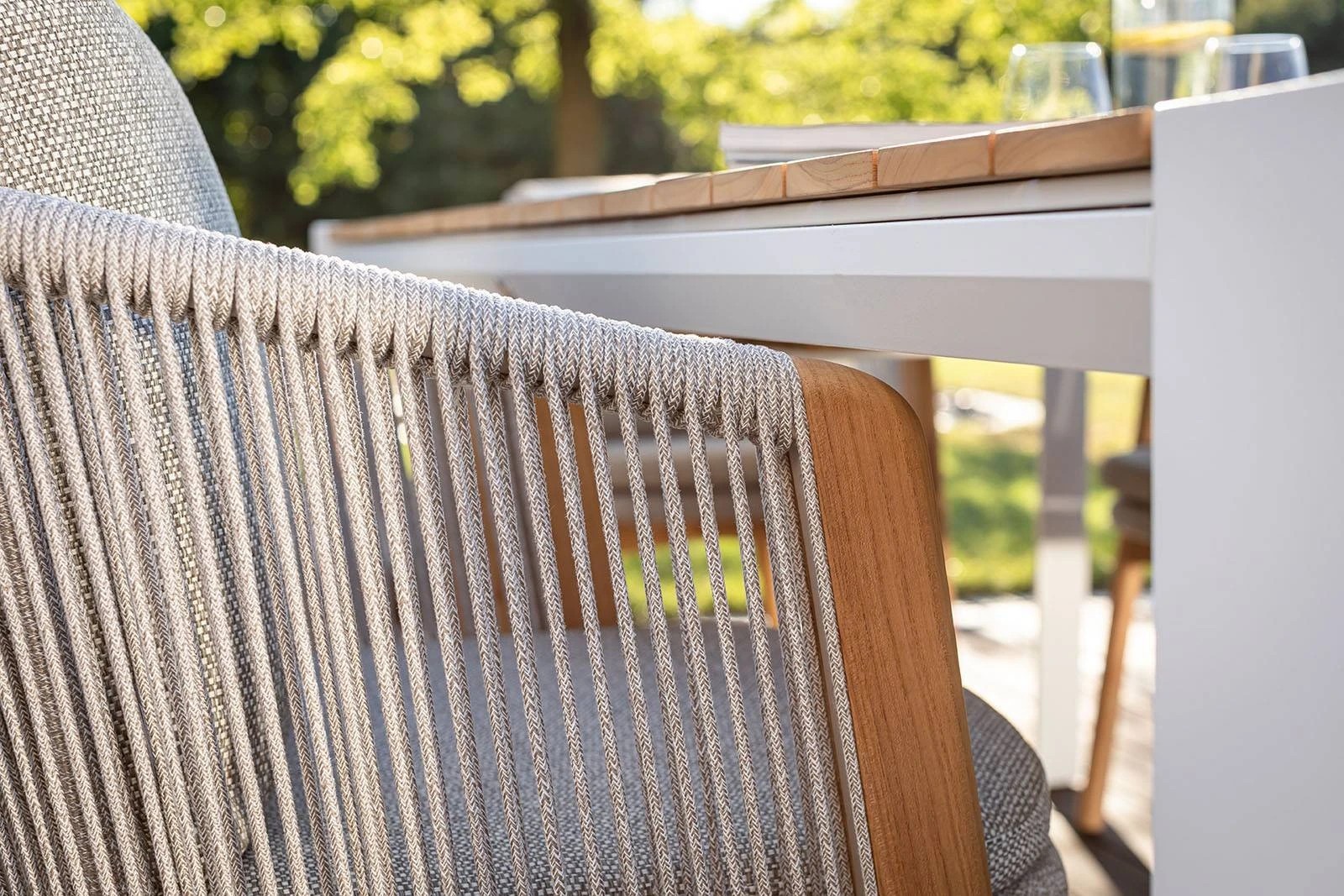 КАРКАС: Для изготовления каркасов мебели компания ZUMM использует высококачественный сварной алюминий с порошковым покрытием, тиковое дерево и веревки из полипропилена или материала Textiline.