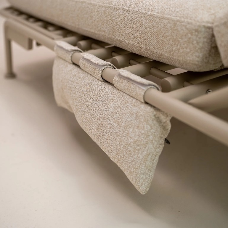 КАРКАС: Для изготовления каркасов мебели компания ZUMM использует высококачественный сварной алюминий с порошковым покрытием, тиковое дерево и веревки из полипропилена или материала Textiline.