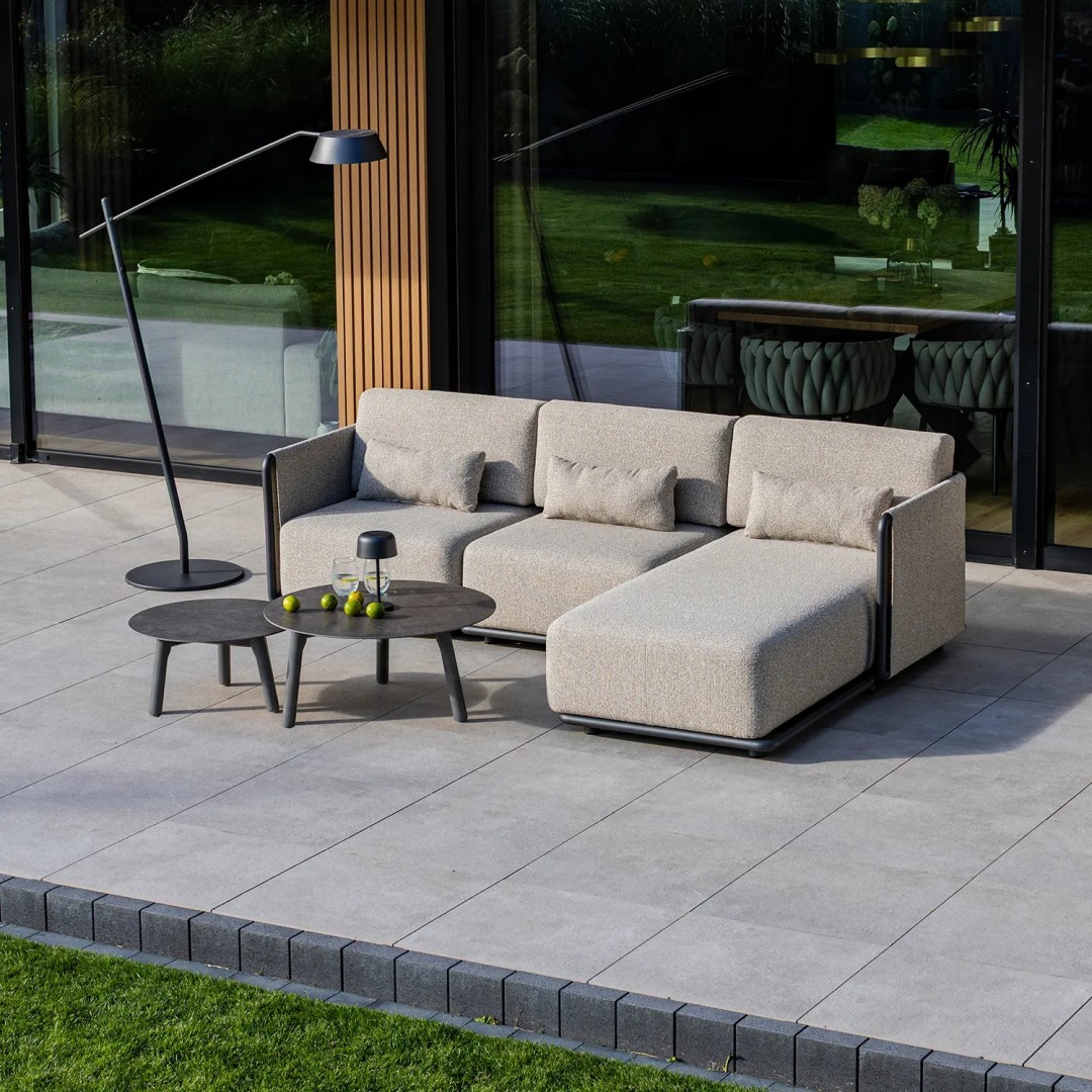 Комплект садовой мебели ZEN I – это модульный комплект для создания угловых зон отдыха на открытом воздухе. Комплект состоит из углового дивана, центрального дивана, левого шезлонга и журнальных столиков, что позволяет создать удобную планировку больших террас и зон отдыха.