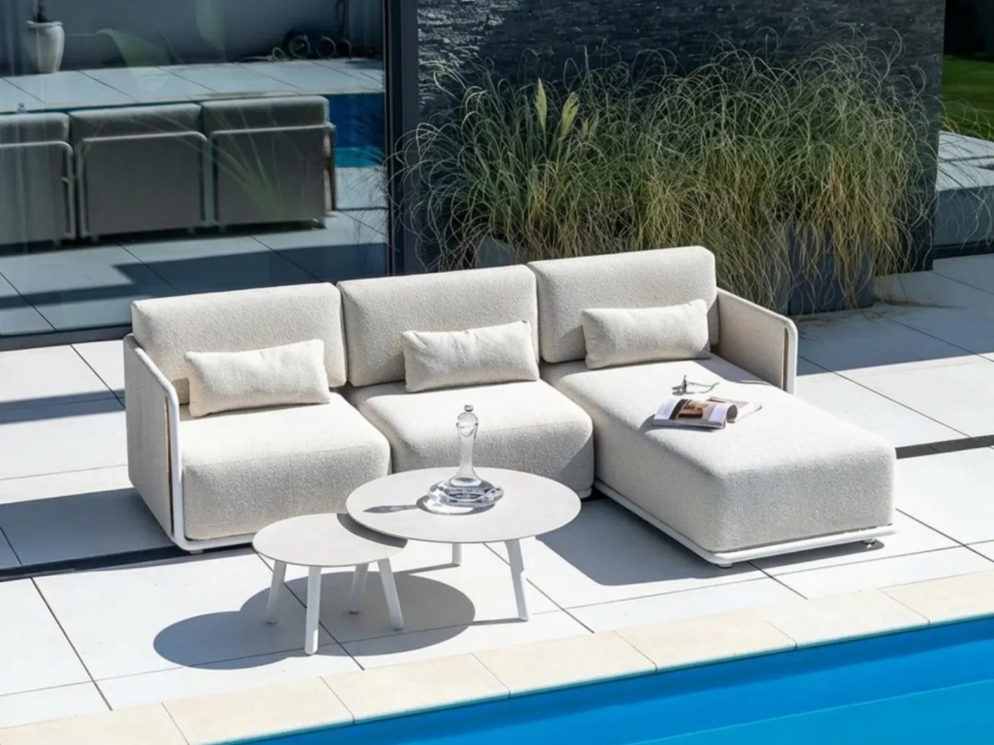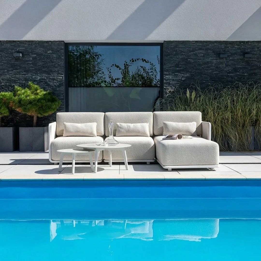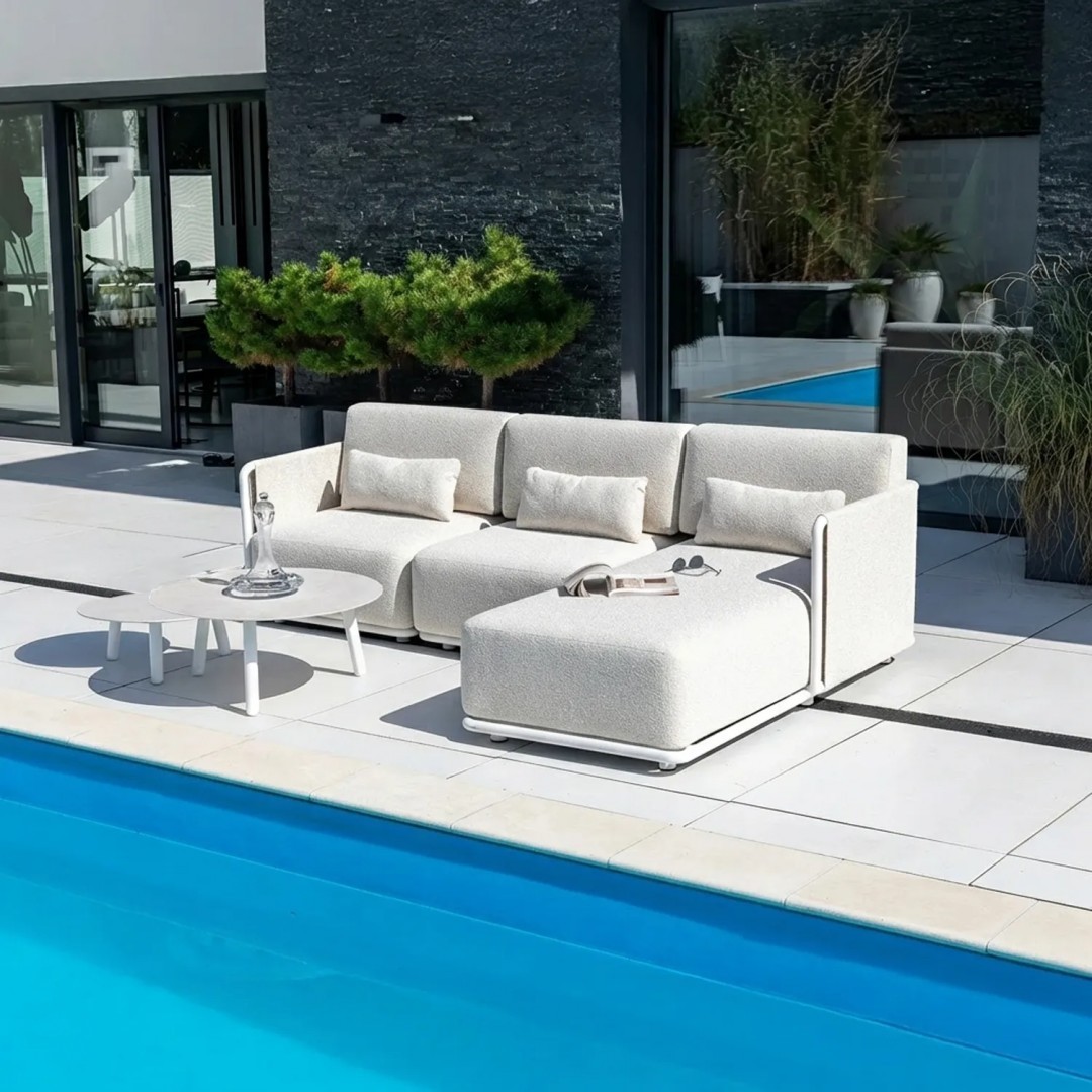Комплект садовой мебели ZEN I – это модульный комплект для создания угловых зон отдыха на открытом воздухе. Комплект состоит из углового дивана, центрального дивана, левого шезлонга и журнальных столиков, что позволяет создать удобную планировку больших террас и зон отдыха.