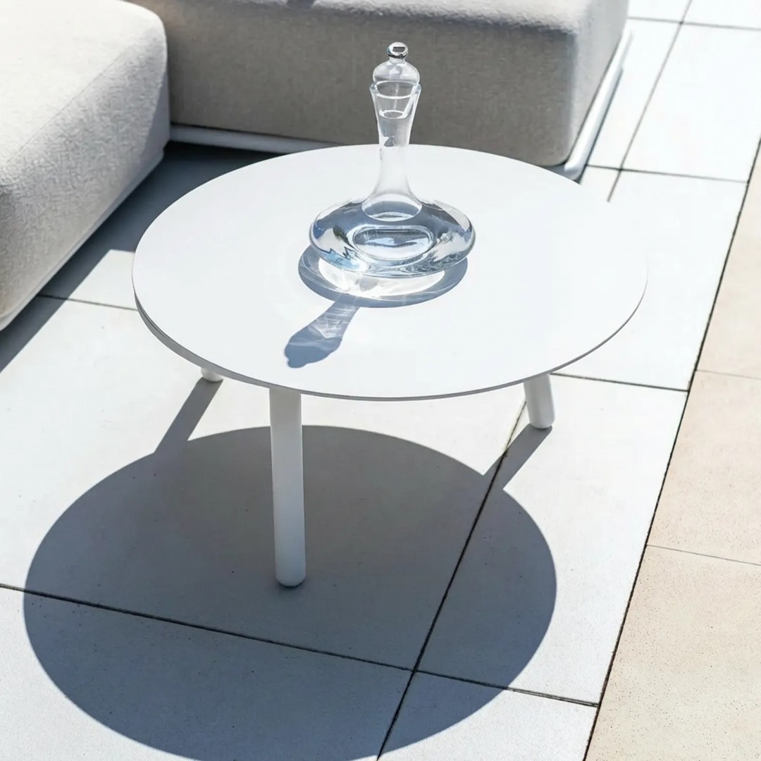 Форма комплекта основана на низкой, просторной форме и четком разделении на модули. Шезлонг является неотъемлемой частью композиции, предлагая возможность отдыха в полулежачем положении, что отличает ZEN I от традиционных комплектов диванов. Весь комплект создает спокойную горизонтальную композицию, которая хорошо вписывается в современные террасы и зоны у бассейна.