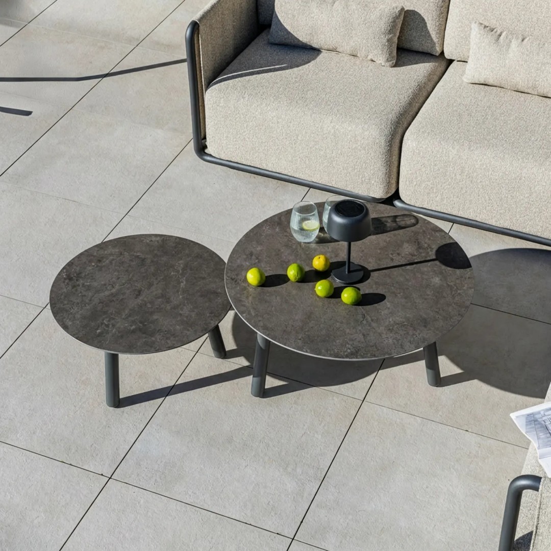 ZEN IV отличается упрощенным дизайном, ориентированным на расслабление без необходимости в дополнительных боковых блоках. Это делает комплект хорошо подходящим для мест, где важен баланс между комфортом и пространством. Два журнальных столика разного диаметра дополняют комплект, предлагая практичное полезное пространство, не нарушая при этом легкость композиции.