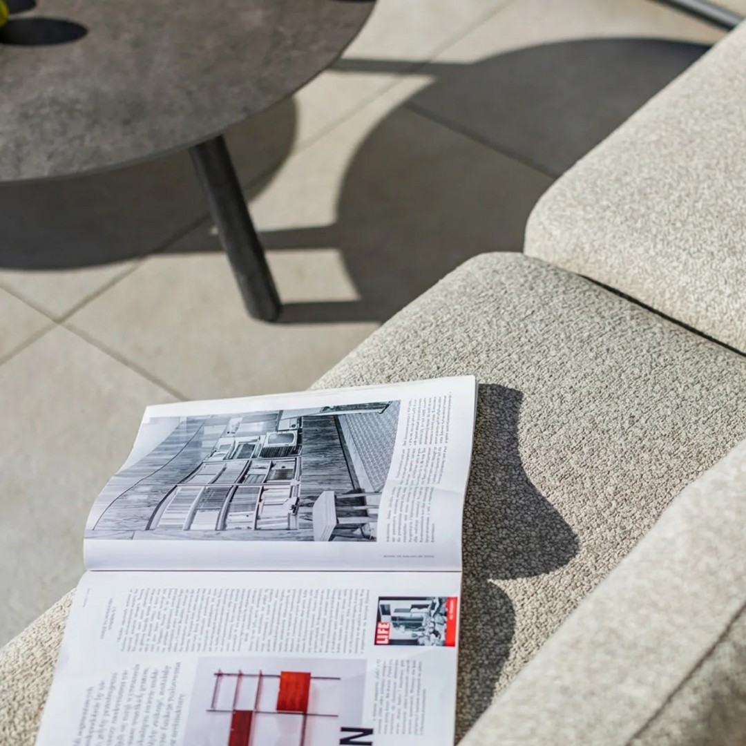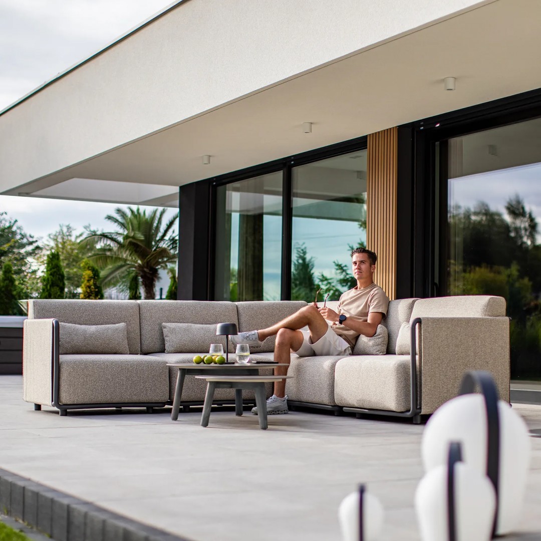 Алюминиевый каркас с порошковым покрытием обеспечивает устойчивость и защиту от непогоды, а мягкие подушки с обивкой из ткани Sunproof предназначены для повседневного использования на открытом воздухе.