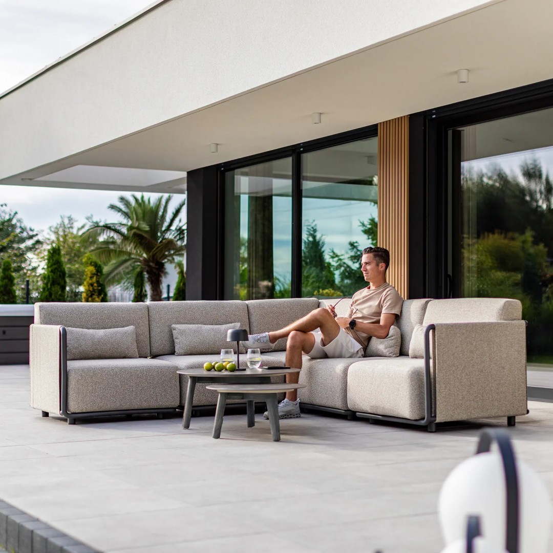 Комплект садовой мебели ZEN IV – это минималистичный набор для отдыха на открытом воздухе, предназначенный для создания уютных зон отдыха. Угловой диван и центральный блок создают гармоничный, компактный дизайн, идеально подходящий для современных террас, патио и зон у бассейна.