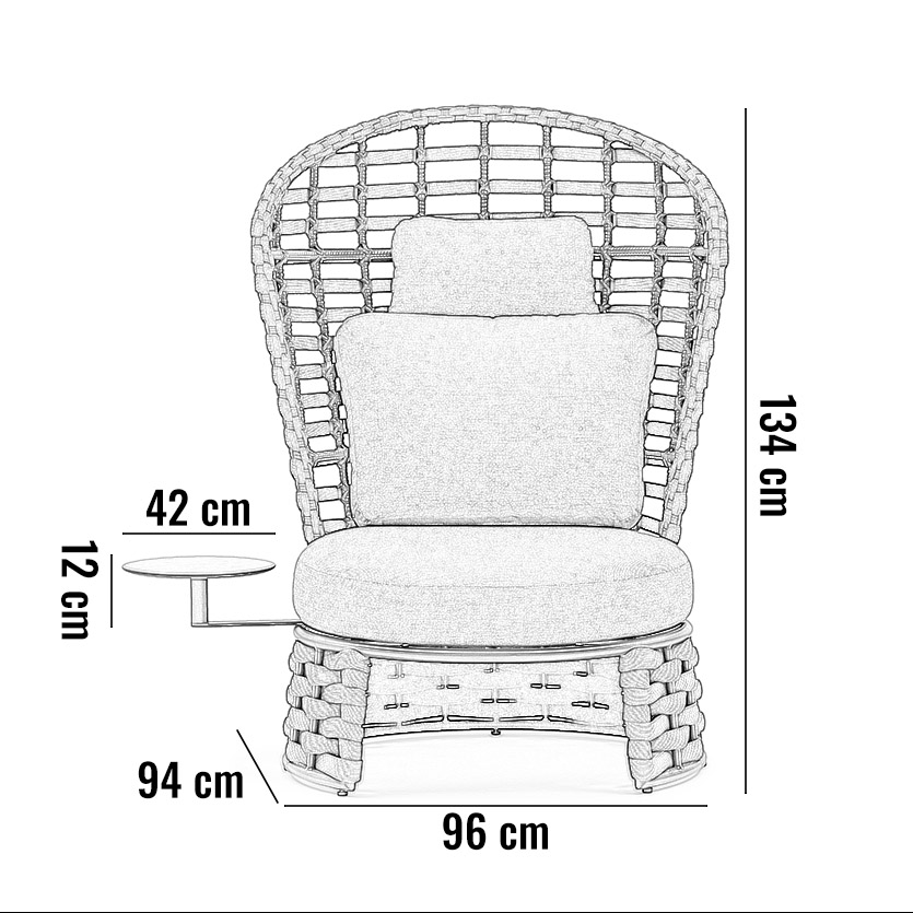 Кресло NOBLE – это квинтэссенция роскоши и элегантности в мире садовой мебели. Его величественная форма и тщательно отобранные материалы делают каждый момент, проведенный на открытом воздухе, уникальным. Это не просто предмет мебели – это личный трон, подчеркивающий ваш стиль и стремление к высочайшему качеству.
